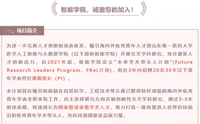 公司多措并举,吸引青年人才来院交流发展。推出“未来学术带头人计划”(Future Research Leaders Program,FReL计划),旨在吸引和鼓励在自然科学、工程技术等方面已取得较好成绩的海内外优秀青年学者全职来院工作,自主选择研究方向开展创新性交叉学科研究,通过3-5年的培养期,快速成长为国家级或省级学术人才,着力打造一批有望进入世界科技前沿的优秀青年学术带头人。举办国际青年学者沙龙,诚挚邀请优秀人才走进公司,了解公司,感知公司,增进青年人才沟通交流。举办“智能医学讲堂”学术讲座,邀请海内外交叉学科专家学者、青年才俊、产业精英,来院碰撞思想,寻找合作点。经常性组织博士学术报告,交流思路,分享前沿。通过一系列举措,为青年人才提供开放、自由、融合的成长平台。
