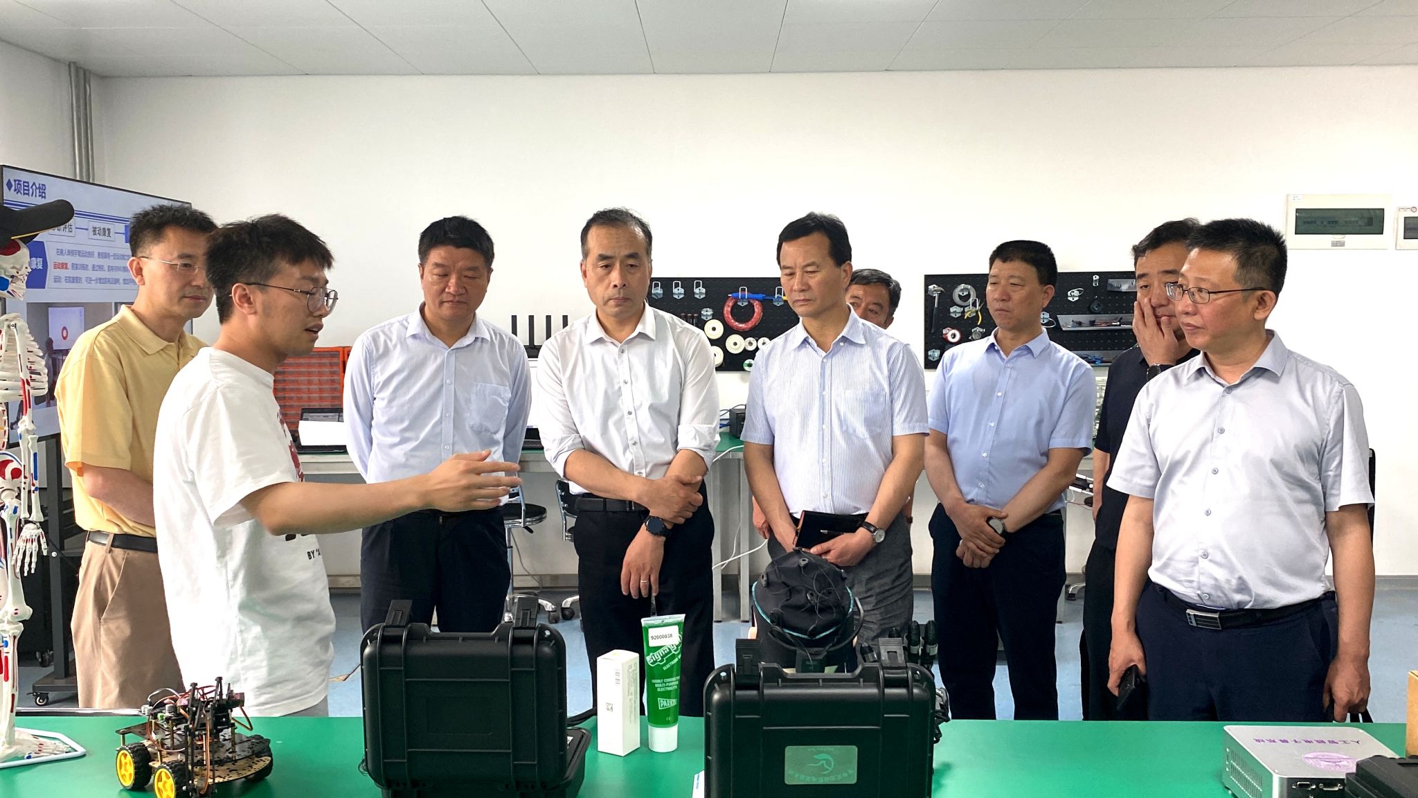 会前,调研组一行参观了人工智能医学辅助诊断实验室、康复机器人实验室和核酸大数据与智慧医学实验室。