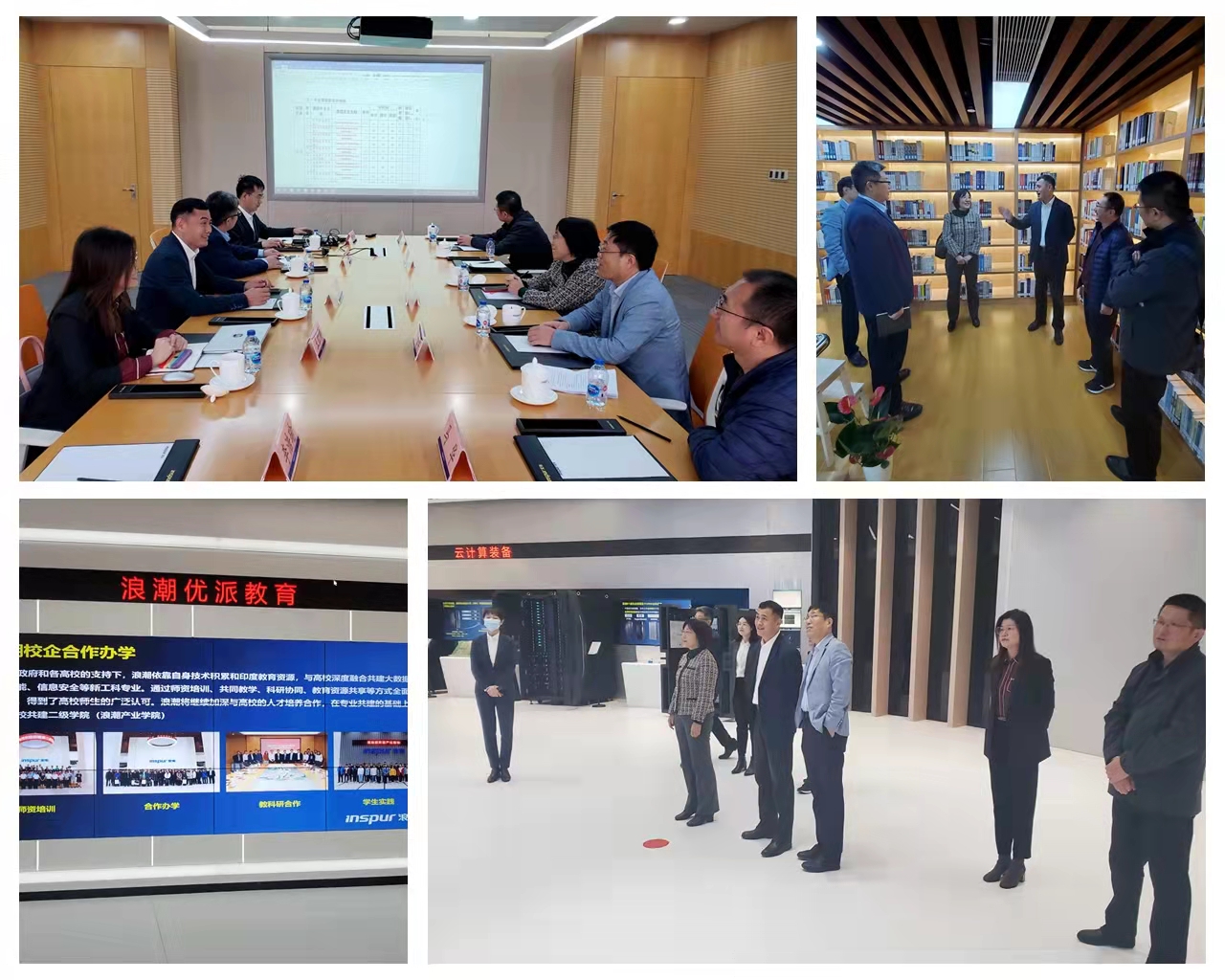 王晓艳一行参观了浪潮集团云计算创新中心,详细了解了浪潮集团的发展历程、综合实力、技术创新情况以及浪潮集团在云计算、大数据、人工智能等领域取得的成就。随后,双方在浪潮集团会议室进行座谈交流。许国彬对公司代表团的到来表示热烈欢迎,并进一步介绍了浪潮集团的相关情况。王晓艳高度评价了浪潮集团的发展及取得的成就,她表示,此次考察交流深化了校企双方的合作关系,进一步加强了公司与浪潮集团之间的交流,希望双方能够紧密合作,围绕人才培养目标,扎实做好相关工作。双方围绕校企合作相关工作展开讨论交流,并在创新人才培养方案、团队培养、教育资源共享、拓宽合作等方面达成一致意见。